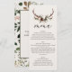Cartão de Menu de Casamento Floral com Galhada Rústica | Menu de Recepção de Galhada de Veado Boho Floresta | Casamento Elegante de Celeiro e Costa