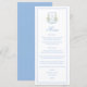 Cardápio de casamento com monograma e crista de hortênsia azul é um design vintage inspirado em tons suaves de azul e branco, perfeito para um casamento de jardim ou com tema costeiro. O cardápio apresenta uma mistura de estilo de tipografia azul clara elegante, combinando letra cursiva e negrito. Fundo azul claro sólido para adicionar um toque de cor. Você pode personalizar facilmente este design com seus detalhes. Feliz planejamento!