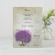 Árvore Mágica e Caprichosa do Amor Árvore de Folhas Coração Roxo em Papel Metálico Tonificado Prateado Quente Manchado com Chá com uma Sobreposição de Partitura Antiga e alguns desenhos enfeitados para realçar as raízes do amor neste convite de casamento florestal único...