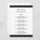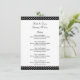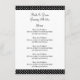 Fabuloso menu de casamento de bolinhas preto e branco. Modelo elegante com tipografia clássica. Belas modelos para casais se casarem em breve. Parte do conjunto de baratos com decorações e artigos de papelaria correspondentes. Personalize com nomes de noiva e noiva.