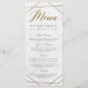 Crie seus próprios cartões de menu de casamento personalizados com modelos fáceis de usar da WowWed. Estes cartões de menu geométricos apresentam caligrafia dourada falsa, fundo de mármore branco e tipografia elegante. No verso, há um padrão geométrico dourado em um fundo cinza.