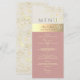Romântico e vintage-chique, este cardápio de casamento em marfim, bege e rosa poeira apresenta delicadas flores rústicas douradas — perfeito para adicionar elegância atemporal à sua mesa.
