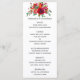 Cardápio de casamento floral em aquarela com rosas e peônias vermelhas, roxas, rosadas e burgundy.