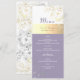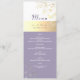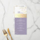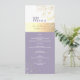 Cardápio de casamento vintage, botânico, rústico, caligrafia, moderno, elegante, lavanda roxo empoeirado com renda floral dourada e prateada.