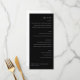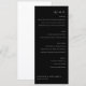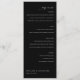 Este elegante cardápio de casamento apresenta um fundo preto elegante com texto branco nítido, criando uma aparência sofisticada e moderna. O layout é organizado em seções distintas para Entradas, Salada, Prato Principal e Sobremesa, cada uma destacada em fonte sans-serif maiúscula e limpa. Um toque de elegância é adicionado pela escrita cursiva usada para a palavra "CARDÁPIO" no topo. Perfeito para eventos formais, este design exala um clima refinado, tornando-o ideal para casamentos ou reuniões sofisticadas.