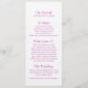 Menu de janto de recepção de casamento floral de arte de aquarela simples de dupla face 4-3. Belo cardápio de casamentos de cor-de-água pintada floral. Sombreado em matizes cor-de-rosa e roxo. Pintura única em aquarela e projetada por Sarah Trett.