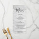 Este cardápio formal rústico em madeira branca é perfeito para o casamento formal dos seus sonhos. Personalize este cardápio de casamento com os detalhes do seu casamento e pratos.