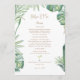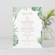 Cardápio de casamento tropical. Texto dourado. Centralizado.