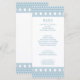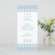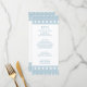 Cardápio de festa elegante com toga grega ou romana apresentando um padrão minimalista de meandro grego em azul. Produto personalizável para uma celebração memorável. Perfeito para casamentos, noivados, festas de formatura, aniversários de casamento, save the dates, despedidas de solteira e festas de aniversário com tema Grécia Antiga ou Roma Antiga.
