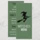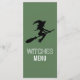 Cartão de Menu de Festa de Bruxa na Vassoura. Ótimo para Restaurantes, Cafés, Eventos de Halloween etc.