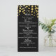 Cartão de Menu de Glamour Moderno com Pontos de Confete Preto e Dourado.
