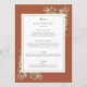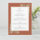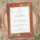 Cartão de menu de casamento botânico de terracota personalizado com suas informações em tipografia elegante. Projetado por Thisisnotme©