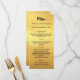 Cartão de menu de jantar de Natal. Personalize e adicione um nome/evento, data e o cardápio. Fundo com aparência de ouro falso, texto preto.
