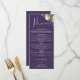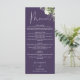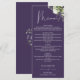 Este elegante cardápio de jantar de noiva com flores roxas e folhagens botânicas pode ser personalizado com suas informações em tipografia sofisticada e com as iniciais do seu monograma no verso. Projetado por Thisisnotme©