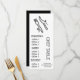 Um modelo de cardápio moderno e elegante para restaurante de cozinha moderna ou jantar temático para foodies. Este cardápio fofo tem uma ilustração fofa de talheres cinza escuro contra um fundo branco personalizável. O texto pode ser personalizado para atender às suas necessidades. Tema preto e branco