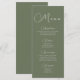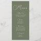 Este cardápio é caracterizado pelo estilo boho, cor verde sage, com uma mistura de diferentes estilos de fonte, muitas vezes em tamanhos diferentes, para criar uma aparência única e eclética que torna esses cardápios uma estética natural.