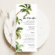 Cartões de menu de casamento Tropical Palm Trees são uma escolha perfeita para casais que amam o sol, o mar e a areia. O design tropical apresenta exuberante folhagem, flores exóticas e um toque de elementos praianos, como palmeiras e conchas. Nossos menus são a maneira perfeita de anunciar o dia do seu casamento para os seus convidados. Impressos em papel cartão de alta qualidade, certamente impressionarão seus convidados e definirão o tom do seu dia especial. Nossa coleção de casamento inclui tudo o que você precisa para tornar seu dia especial verdadeiramente inesquecível.