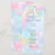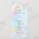 Cardápios de chá de bebê unicórnio com adorável unicórnio em um lindo fundo de nuvem cor-de-rosa pastel. Estes cardápios de unicórnio são facilmente personalizados com os detalhes do seu evento.