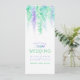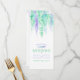 Tipo de vinha abstrato moderna, menu janto de casamento floral de cor d'água ou menu de evento especial. Edite este menu com os seus próprios menus e cursos de janto. Menu de arte de aquarela abstrato azul roxo, verde e pálido moderno. Ideal para casamentos florais e casamentos temáticos modernos verdes e roxos ou outras flores de videira. © Design e pintura a aquarela por Sarah Trett. www.sarahtrett.com para www.mylittleedenweddings.com no zazzle.