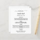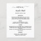 Um clássico cardápio de casamento. Um fundo branco. Texto preto. Personalize e adicione seu nome, data e menu. Você pode adicionar mais texto, fotos no verso. 1 folha = 1 menu impresso borda a borda.