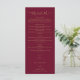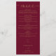 Este elegante menu de casamento em grafia com coração em burgundy e dourado pode ser personalizado com suas informações em tipografia chic. Criado por Thisisnotme©