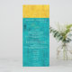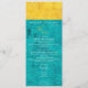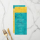Cartão de Menu de Casamento com fundo de papel texturizado de folha azul verde-claro e folha de ouro-amarelo. Bela experiência de verão. Placa do menu do casamento vintage. Coleção Amarelo Teal.