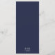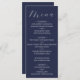 Avise aos seus hóspedes o que está no menu da sua recepção de casamento usando este menu minimalista moderno do casamento azul-marinho.