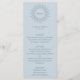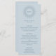 Moldura moderna minimalista de ardósia azul do sol, menu. Modelo oferece espaço para nomes, data e três títulos com descrições na coordenação da cor azul da ardósia. A cor de fundo mostrada em azul-poeirento claro pode ser personalizada.