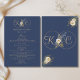 Marinho Azul Dourado Monograma Nome de Casamento Menu Inicial. Celebre seu casamento com estilo e elegância. Fácil de personalizar e fazer o seu. Confira!