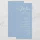 O "Elegante Simples Caligrafia Light Blue Wedding Menu" é perfeito para um casamento azul empoeirado ou um casamento azul francês. Ideal para um tema de casamento azul empoeirado ou um casamento costeiro, este menu mostra uma design de casamento azul clara que complementa qualquer tema de casamento azul. Perfeito para temas de casamento azuis, casamentos azuis e casamentos azuis, é uma escolha bonita para um tema de casamento azul de bebê ou algo de casamento azul. Também ideal para casamentos azuis e brancos e casamentos de hidrangea azul.