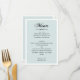 Menu azul com um roteiro elegante para o casamento clássico de tradição.