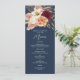 Eleve suas mesas de recepção com este elegante cartão de menu de casamento burgundy e azul-marinho. Com rosas em aquarela em burgundy, pêssego e marfim com grama pampas e folhagens em um fundo azul-marinho profundo, este design de menu é romântico e sofisticado. Perfeito para casamentos de outono ou inverno, permite que você exiba seus pratos de jantar de uma forma lindamente coordenada. Personalize com nomes, data e detalhes do menu. Convites, cartões de RSVP, programas, cartões de detalhes e sinais de boas-vindas correspondentes estão disponíveis em nossa coleção para um conjunto de casamento completo.
