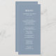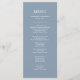 Adicione um toque elegante ao seu casamento com este Menu Simples de Casamento Azul. Com um fundo azul empoeirado de eterno, este menu é perfeito para criar uma sofisticada experiência de jantar. Sua design limpa e minimalista destaca suas seleções de refeições lindamente enquanto combina facilmente com temas clássicos ou modernos de casamento. Criado com materiais de alta qualidade e texto personalizável, este menu é uma excelente escolha para casais que buscam elegância subestimada. Quer seja um janto ao acento ou uma recepção ao estilo do buffet, este design de menu garante que os seus convidados desfrutem de uma apresentação na moda e memorável das suas ofertas culinárias.