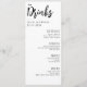 Apresentando a Lista de Bebidas Alcoólicas Laterais Solteiros da Elegance Collection - uma seleção refinada e curada de libações para elevar a celebração do seu casamento. Este cartão, desenhado no sofisticado estilo da coleção, oferece uma visão do mundo de cocktails, vinhos, bebidas espirituosas e cervejas refinados. As linhas limpas e a estética moderna na placa do lado do solteiro criam uma apresentação visualmente impressionante. A Lista de Bebidas Alcoólicas é categorizada em Coctails, Wines, Spirits e Beers, oferecendo uma seleção de três opções em cada categoria. Esse arranjo ponderado garante uma variedade que atende a diferentes preferências, prometendo uma experiência indulgente tão refinada quanto sua história de amor. Dentro de cada categoria, as opções de bebida específicas podem ser descritas em texto personalizável. Personalize as descrições para se alinhar perfeitamente com o seu estilo único, garantindo que cada detalhe da apresentação reflita a beleza e a individualidade da sua celebração. Como parte da Elegance Collection, esta Solteiro-Sided Alcoholic Drinks List (Lista de Bebidas Alcoólicas em Lado-) é perfeitamente personalizável para se harmonizar com o tema geral do seu casamento, criando uma estética coesa e elegante que dá o tom para a sua experiência com bebidas. Elegantemente sofisticada e deliciosamente indulgente, a Lista de Bebidas Alcoólicas em Lado-Solteiro da Elegance Collection oferece uma jornada curada para o mundo das libações para seus convidados. É uma adição refinada à sua celebração, garantindo que cada detalhe, incluindo o menu bebidas, contribui para a elegância e sofisticação gerais do seu dia especial.