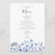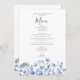 Menu de casamento floral de flor silvestre azul. Fácil de mudar o texto. Bonito floral para o casamento de verão primavera.