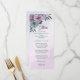 Menu casamento botânico com flores azuis roxas