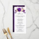 Elegante menu de casamento do tema ouro roxo real com elegante buquê de roxo real, índigo, ouro, flores rosa amarelas e folhas de eucalipto. Entre em contato comigo para obter ajuda sobre a personalização ou se você precisar de outro produto com este design.
