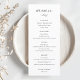 Menu de casamento personalizado com caligrafia elegante moderna com elemento botânico.