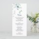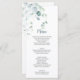 O cardápio botânico de eucalipto verde-empoeirado, azul-poeirado, em um fundo branco.