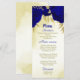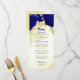 Belo cartão de cardápio de casamento com flores azuis reais e folhas de ouro Os detalhes da relva de ouro são simulados. PARA MAIS PRODUTOS CORRESPONDENTES, consulte a coleção acima ou entre em contato comigo