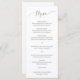 Menu clássico de casamento branco com o cabeçalho em um roteiro delicado. Um layout simples sem gráficos torna isso um design elegante e eterno, perfeito para um casamento formal.