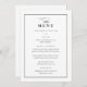 Este Menu de Casamento Elegante Clássico é simples e versátil. Ele apresenta um design preto e branco chic com um monograma, detalhes de script, quadro simples e texto editável formal. Clique no botão editar para personalizar este design.