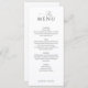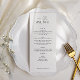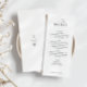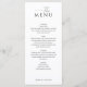 Eleve as configurações de mesa com a placa de menu branca elegante simples. Consistente com o tema do casamento, estas cartas ostentam um fundo branco, uma letra de serifa clássica e nomes personalizados, criando um aditamento coeso e elegante à sua experiência de jantar.