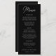 Este cartão de cardápio de casamento apresenta um roteiro ousado e contemporâneo que chama a atenção. O design preto e branco garante uma aparência impressionante, enquanto os itens de menu são apresentados em seções para facilitar a navegação. Este cartão é uma maneira perfeita de apresentar seus convidados à deliciosa experiência culinária que você planejou para sua celebração de casamento.