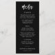 Esta carta de cardápio de casamento ostenta uma tendência para a caligrafia moderna. O script na moda adiciona um toque de drama ao design preto e branco, enquanto o layout claro garante que seus convidados possam explorar facilmente o menu delicioso criado para sua celebração especial.