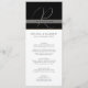Elegante Monograma Chic Carvões Pretos de Casamento Branco. Um belo cardápio de casamento de designer sofisticado com texto de carvão em branco com um monograma de cinza pálida impressionante sobre preto com nome de família sobre carvões com bordas douradas antigas e finas. Personalize com o nome da noiva, data de casamento, Monograma inicial, nome da família e texto do menu de casamento. Todo texto, fontes e cores são personalizáveis. Convidamo-lo a visitar a nossa loja, Austen & Grace, para ver a suíte de casamento de cheios, produtos correspondentes e muito mais. Entre em contato conosco se precisar de assistência.