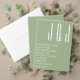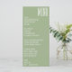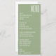 Estilo clássico de sábio verde e branco minimalista, menu personalizado ultra moderno de casamento com tipografia ousada de monograma. Este menu é facilmente editável. Se precisar de ajuda para a personalização deste produto ou se precisar de mais produtos correspondentes para esta coleção, envie-me gentilmente o Zazzle.