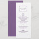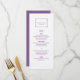 Cartão de Menu Deco Chic Wedding Simples e Minimalista com uma moderna fronteira decorativa de deco de arte roxa. Este menu clássico e elegante é fácil de personalizar com seus detalhes de casamento. Localize mais opções de personalização clicando em Personalizar.