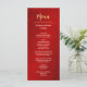 Este moderno cartão de cardápio chinês apresenta um símbolo de dupla felicidade de ouro artístico em um fundo vermelho brilhante. Com nomes personalizados de noiva e noivo, a data do casamento e um texto personalizado em um moderno roteiro escrito à mão.