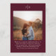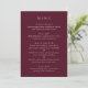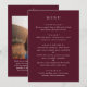 Menu de casamento estilo clássico com um design simples, mas elegante, em uma cor burgundy profunda que é perfeito para um casamento de outono ou um casamento de inverno / Natal. Use o modelo para adicionar uma foto ou removê-la na ferramenta de edição de design.